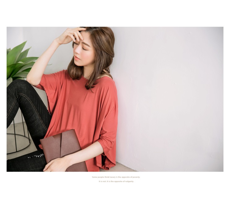 [OB嚴選2017穿搭推薦] 2017 OB嚴選韓國系列推薦0605新品 素色飛鼠袖弧襬剪裁圓領寬鬆上衣.2色