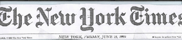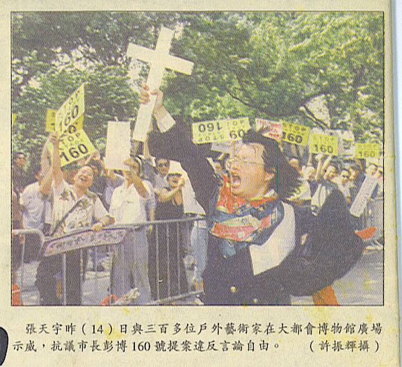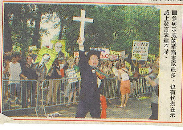 1999年6月25日 星期五 刊登在 紐約時報 B3版 抗議政治扼殺藝術