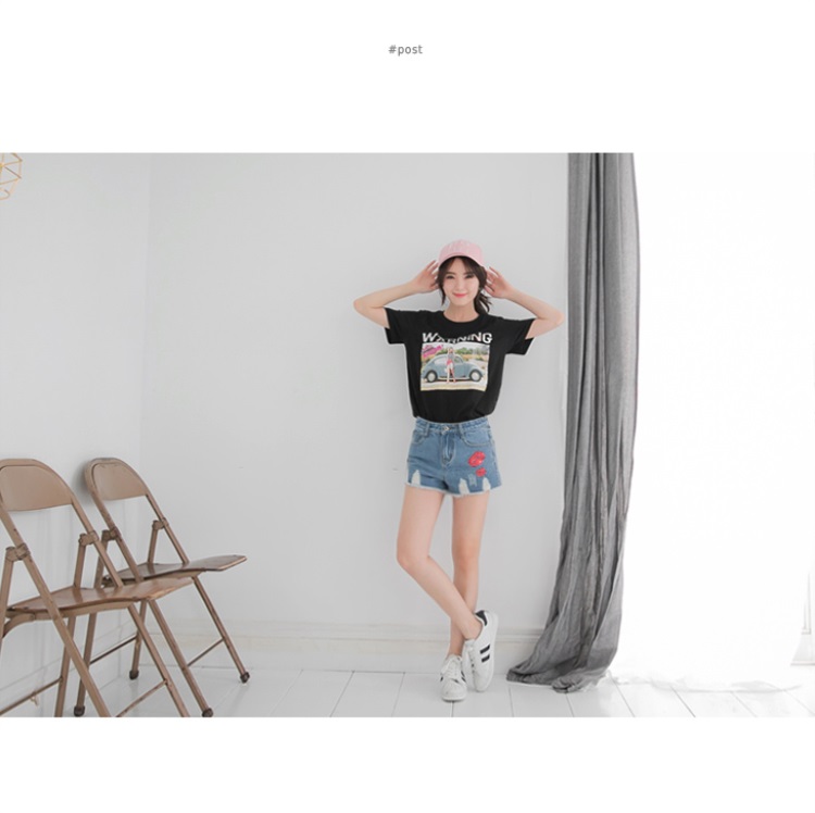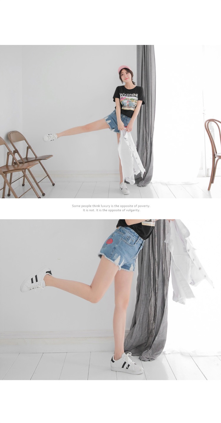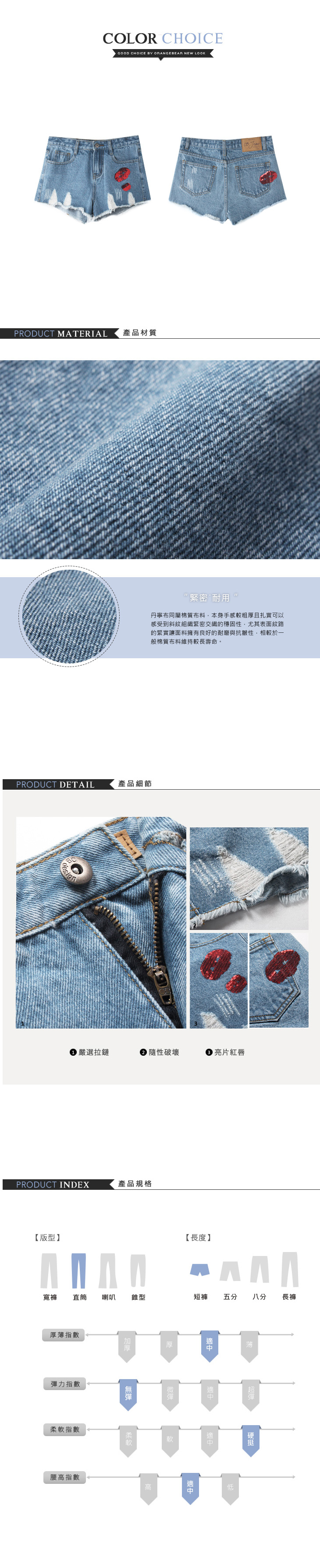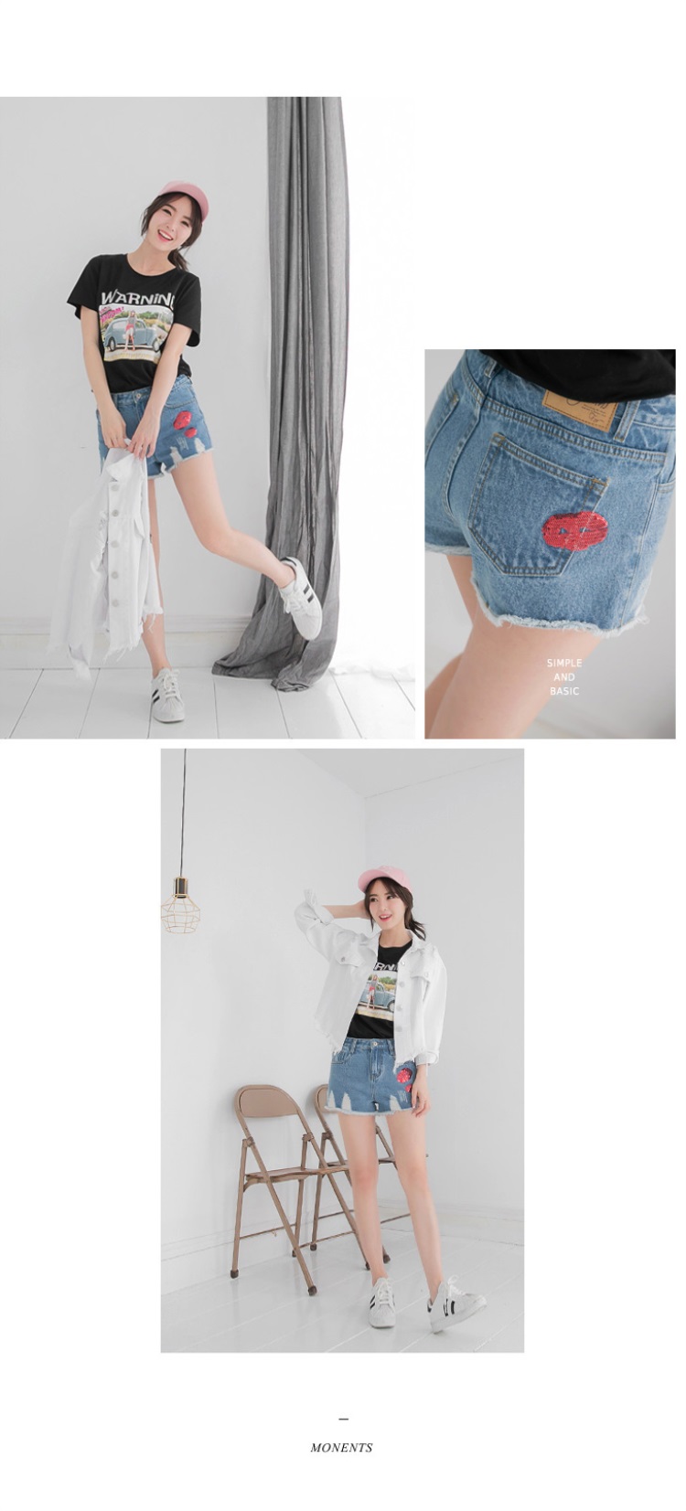 0511新品 亮片紅唇造型高雄二胎借款破損感牛仔短褲
