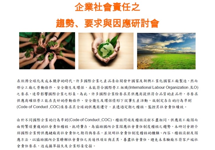 研討會訊息~"企業社會責任之趨勢、要求與因應研討會"