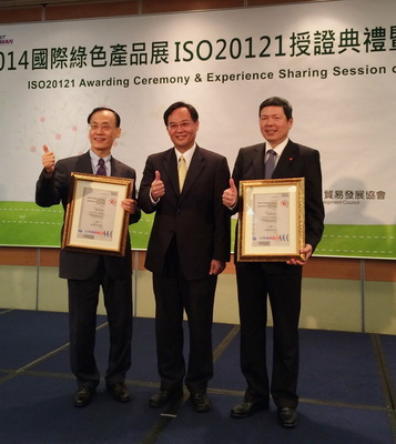 中華民國對外貿易發展協會副秘書長葉明水表示,2014國際綠色產品展是台灣第一個通過ISO 20121的展覽,根據外部驗證機構台灣檢驗科技股份有限公司(SGSTaiwan Ltd.,SGS)表示,本活動為SGS在亞洲所頒發的第一張ISO 20121國際展覽驗證證書。