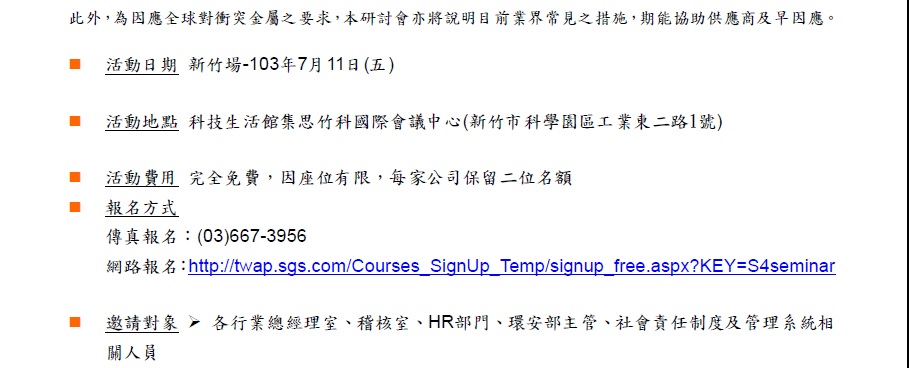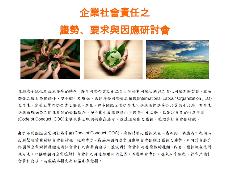研討會訊息~"企業社會責任之趨勢、要求與因應研討會"