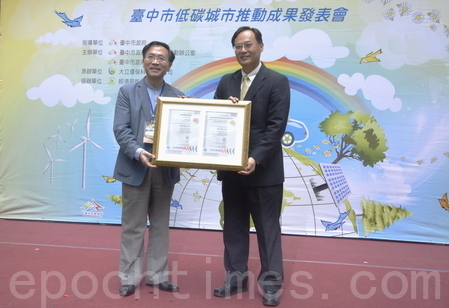 台中也獲得台中市102年溫室氣體盤查取得國際標準ISO 14064認證榮譽,蔡炳坤代表市府接受台灣檢驗科技股份有限公司SGS致贈證書,未來市府可確實掌握臺中市溫室氣體排放量,也能作為後續訂定低碳城市建構措施計畫的依據。。