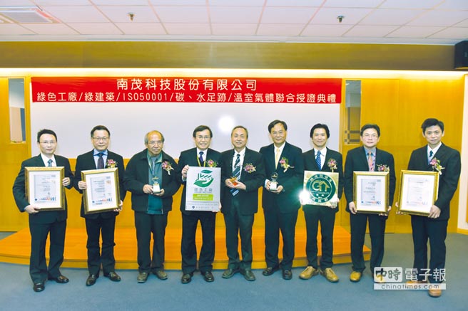南茂科技股份有限公司封測廠,節能減碳有成,在南部科學園區管理局的全力輔導下,經由經濟部工業局的評鑑成為全國第一家通過「綠色工廠標章」之封裝測試廠。並同時在國際機構SGS嚴謹查驗下,於今年11月通過ISO 50001能源管理、多項產品碳足跡、水足跡及溫室氣體等國際驗證。