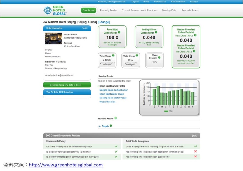 世界旅遊協會會(WTTC)和國際觀光合作組織(ITP)聯合為飯店服務訂定碳足跡統一計算標準(HCMI 1.0),包括希爾頓、凱悅等23多所全球大型連鎖旅館未來都將採用此標準來計算旅館業的碳足跡。