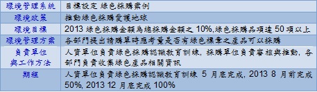 環境績效的提升一直是環境管理的主要議題,期望未來組織的推動以節能減碳及綠色採購為其推動重點。