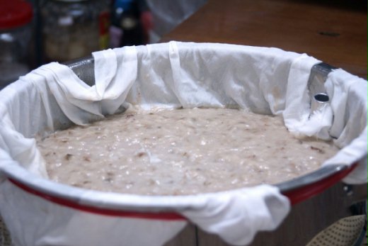 的紅蔥頭等放入米漿中拌勻 然後再加熱讓米漿半熟 再放入蒸籠中蒸兩個鐘頭 於