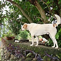 牆上會竄出一隻白底黃花的土狗,牠叫來福!