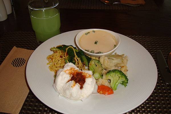 拿了一些綜合青菜、少許叉燒麵、一個叉燒包、另外一碟是蒸蛋。