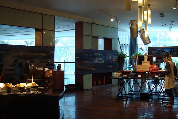 ▲往電梯間的走道旁,有優雅的座椅,或許是午晚餐的供餐區。