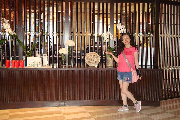▲搭電梯下樓,這是大廳櫃檯的背面擺設,想先拍張紀念照,