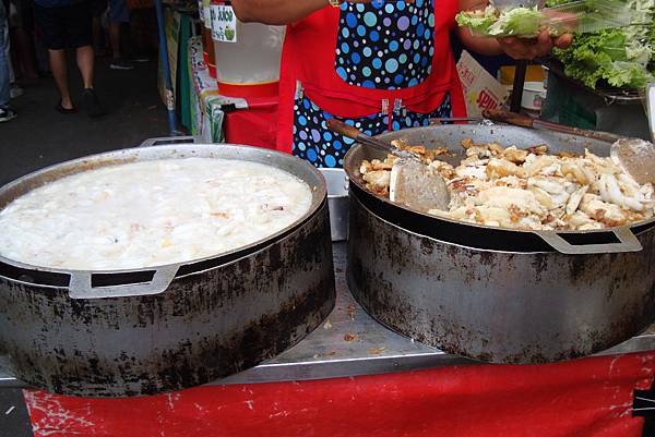 ▲我在這個攤位停下了,手指著左邊那鍋還在冒著泡泡煮滾著的,應該較新鮮。