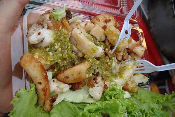 ▲這個東西原來是軟嫩嫩的魷魚,老闆在上面淋了醬汁,入口更覺美味。