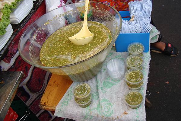 ▲就是這一盆綠色的魔術醬,辣死人不償命,比前面那攤紅色辣椒醬還要辣。