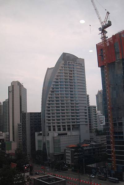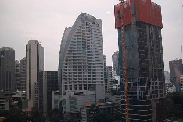 ▲在捷運空橋上,可以看到馬路對面,我們住宿的Pullman Hotel。