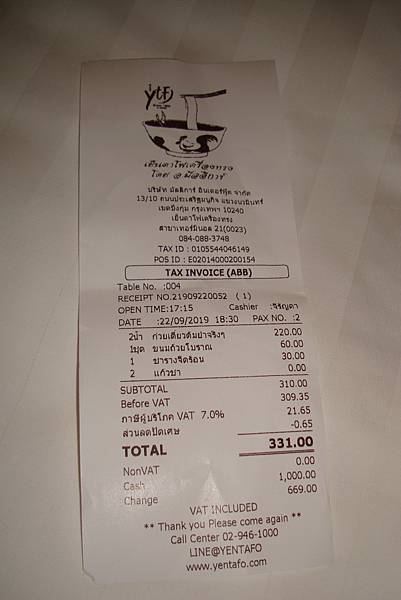 後來遞了一張50銖給櫃台小姐,她也是三秒鐘遲疑後收下了。