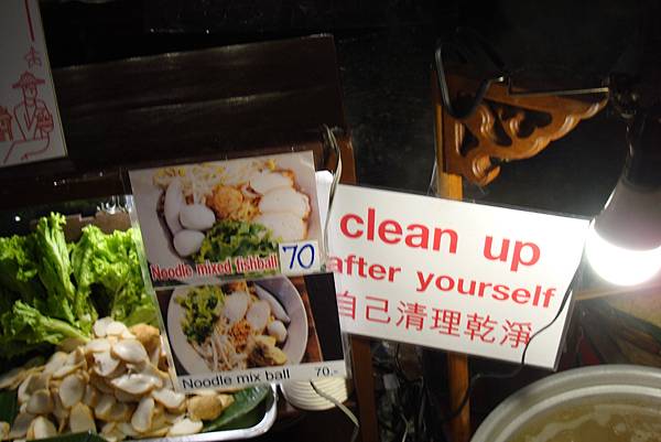 旁邊還有一張很清楚的告示牌,中英文表明吃完的垃圾自己拿去垃圾桶清理。