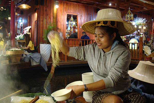 ▲我坐在麵攤旁的小椅子上等我的麵,船娘頭上戴的斗笠好泰國風啊!