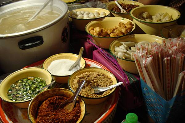 ▲左下角那個盤子裡的,就是每個攤位必有的調味四寶,包括:砂糖、魚露、辣椒粉、辣椒水。