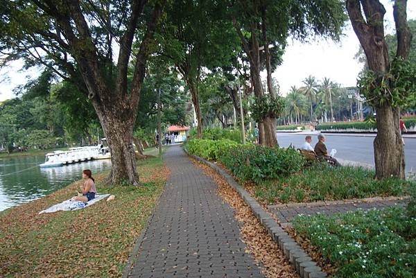 ▲倫坡尼公園是曼谷市區的綠肺,除了蓊鬱的樹木,草地也修飾的極美。