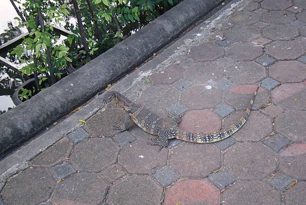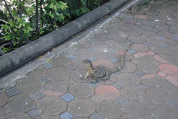 ▲倫坡尼公園的人工湖裡有各種生物,蜥蜴常會在漲水期時爬上岸,完全不怕人類。
