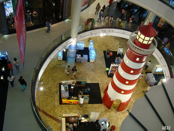 ▲樓下中庭,有一座高高的大燈塔,散布著零星的小攤位。