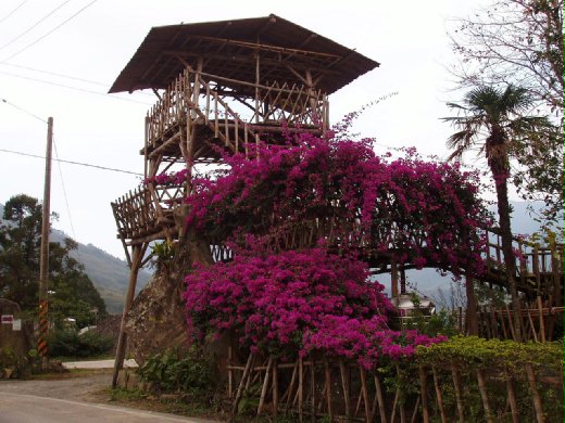 新竹縣尖石鄉梅花部落,為了配合鄉公所舉辦甜柿展售活動,由部落青年陳文斌發起建造一座大號的瞭望台。這座費時一個月才完成的大瞭望台,高達九公尺,寬有五公尺,平台上可同時容納十五人。站在平台上眺望,山地風光盡入眼簾,令人心曠神怡。