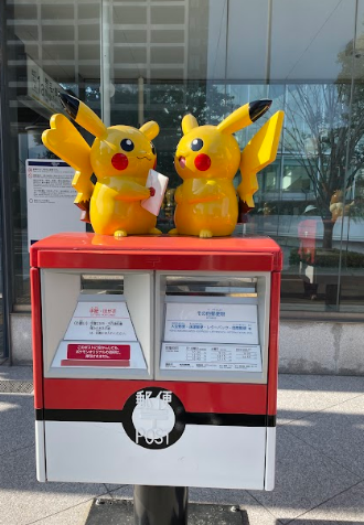 橫濱市今天的天氣晴朗,朋友和我悠閒地邊走邊看,不一會兒,眼前出現可愛吸睛的皮卡丘(Pikachu)郵筒.