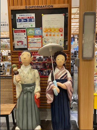 看過表演後,我們兩老在道後溫泉的商場閒逛,有些遊客身穿浴衣足踩木屐隨興地在溫泉街遊走.