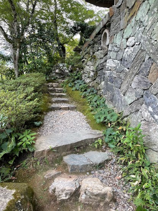 16世紀伊予國(今愛媛縣)名將渡邊勘兵衛的住宅擴建後,有間傳統日式老宅開放供遊客參觀,山莊前有涼亭可以眺望肱川河畔的綺麗風光.