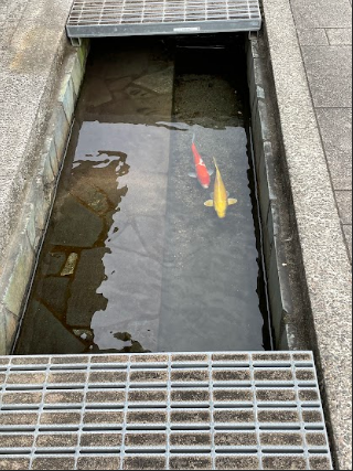 除了享受佳餚美食外,餐館門前的水溝水流清澈,還有幾條金魚在水溝裡表演他們的游泳技術,讓我家老爺目不轉睛,盯著那幾尾金魚,捨不得離去.