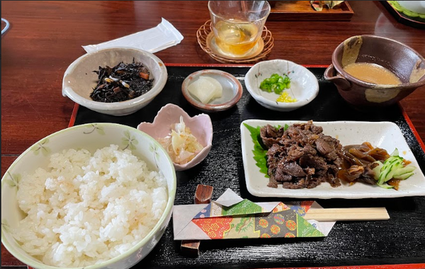 依山傍水的宅邸洋溢著純樸的鄉間田園風情,我們入內參觀時,連我們一共只有四人訪客.我想這個景點稱為臥龍山莊似乎有點誇大,不過既來之,則安之.我和老頭子還是找了個位置小坐片刻,好好地欣賞名將老宅的庭園景色.前往臥龍山莊時,我們路過一家主打鄉土料理的餐館,中午時分,我們決定就去吃那家的鄉土料理.