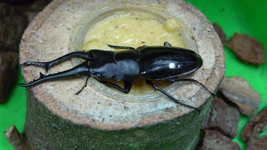 當我們請老闆從店裡拿出長頸鹿甲蟲時,