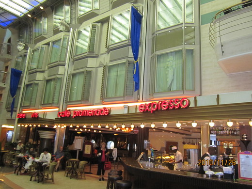 在上船之前,我最憂慮的就是體重會強烈暴增,都説坐郵輪是養豬之旅,沒有人不會暴肥;而我下船二十天後要回上海,一堆親朋好友見面,不能免俗,一定又是吃吃喝喝,那我二0一一年的開頭,一定又得為保持身材這件事努力不懈;於是上船前先控制飲食了好幾個星期,叫朋友暫時別約我吃飯,我給自己上船可以胖六磅的額度。
