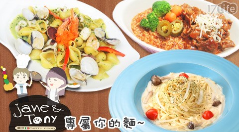 只要158元即可享有【Jane&Tony】原價200元平日消費金額折抵,特別推薦:義大利麵自由配、西班牙海鮮、墨西哥辣椒牛肉、炙燒迷迭飛毛腿、和風章魚干貝燒、羅勒嘣啾麵包。