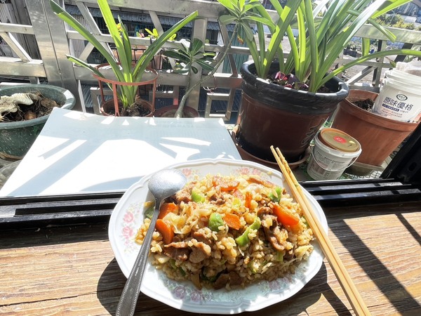 就這樣煮成了一道色、香、味俱全的午餐,一天營養也足夠了。
