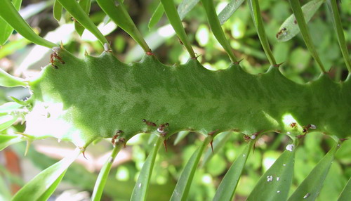 植物放在室內久了,就很容易冒出蟲來,真不知道牠們從哪裡跑出來,這時候我會將它拿到戶外,讓大自然對付牠。原本希望來的是瓢蟲,沒想到螞蟻先來了,只見螞蟻用它的兩根前腳一直撥弄蟲,似乎想將那緊緊巴著植物的蟲拉起來,經過一天,今天小蟲似乎少了一些。