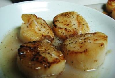 下圖的干貝是用煎的,調味稍稍不同,快好之前加入奶油,再加入大量的蒜末拌炒一下,要起鍋之前擠進半顆檸檬汁。