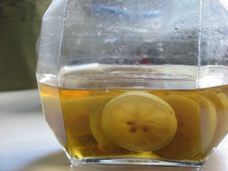 檸檬醋是我良人天天喝一杯的東西,他身體屬於酸性需要鹼性東西平衡(很奇怪,醋是屬於鹼性);另外吃太飽,喝一杯馬上消除胃的不舒服感;請客時,我喜歡在大魚大肉之後,給大家送上檸檬醋,換換口味,再繼續品嚐不同的菜餚。