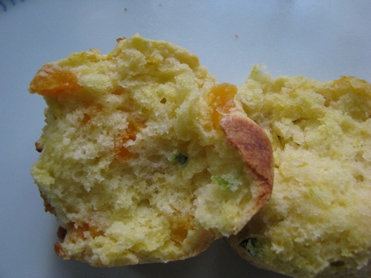 南瓜泥 50g 、乾杏子 8 顆、奶油 60g 、麵粉 250g 、糖兩大匙、發粉一大匙、牛奶 100~150cc