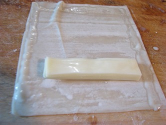 做法非常簡單,中的餛飩皮上放一塊長條約厚