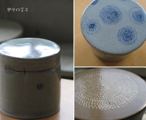 學生上課一陣子了,現在作品也就各式各樣。有人專作家中需要的大盤跟小鉢;有人喜歡杯子跟茶壺;有人跟我一樣喜歡做盒子;有人做的花器非常有質感。