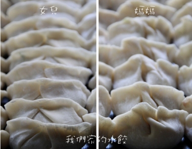但,有時好玩的是,雖是我教的,成果卻也有不同。女兒小時我教她包水餃,教了她比較工整的包法,等她長大懂得手捏的感覺時,教她隨意兩手一捏的作法,她卻是一直堅持用老方法,包出長長的水餃,跟我的胖胖的水餃非常不一樣。