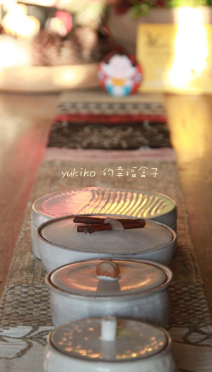 今年過年迎接客人的點心盒子,有別於去年的花花綠綠,今年米白一色到底,全是我最喜歡用的白化妝土上透明釉的盒子。