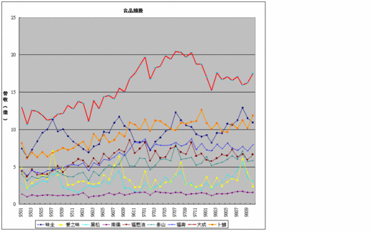 上圖: (例)食品股: 飼料食油股如大成、卜蜂等,其營收Peaks 在1月起至開始加溫,統一(未顯示)、味全、愛之味飲料股,其營收Peaks 在7-8月