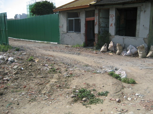 後方的房舍全拆光了,滿目瘡痍,姨媽把車停在過去巷口郭姥爺的雜貨店前,我踩著瓦礫堆進去,憑印象走到姥爺家門前,我不願讓這零落與殘破,摧毀內心美好的畫面、擊潰最深刻的童年記憶,糾結的心情令我說不出話,也回不了神,只隨口喃喃自語說了句,「門前那只青綠色的水井,不知去那裡了? 」