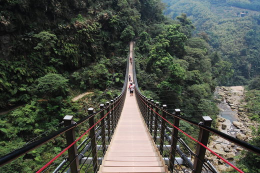 旅行團的話,大多都會搭接駁車到玉福吊橋那邊的入口,從這邊走到天梯比較近,青龍瀑布、土地公廟等景點也在附近,不過聽說接駁車一個人收費四百元,我們窮小孩還是靠 11 路就好。回程不想爬挑戰階梯的話,在竹林休息站有接駁車回停車場,一人 50 元。