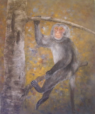 2005年剛學膠彩畫時就想畫這隻臺灣獼猴,當時有讓老師看過草圖不過她建議我暫時先不要畫。