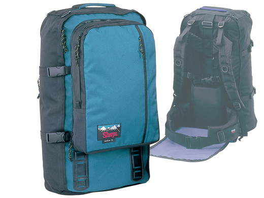 購買的,有隱藏式背負系統,方便登機用輸使用!有子母包可做分離使用!
