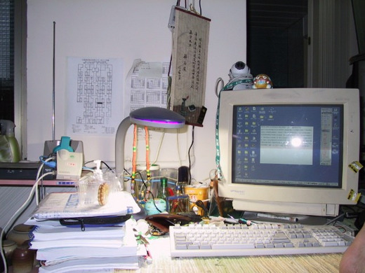 這一張影像是大約九年前在大安瑞安街租時所拍的一張生活照.我的書桌.
